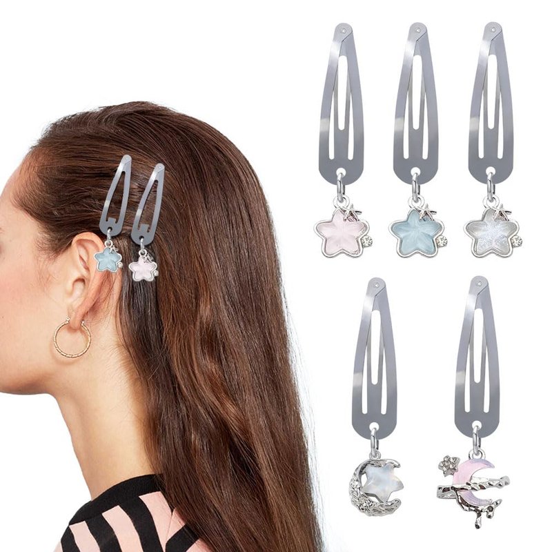 5 Pcs Star and Moon Pendant Snap Clips Sweet Cool Hair Clips Party Festivals Barrettes Hair Accessories MGPFERD