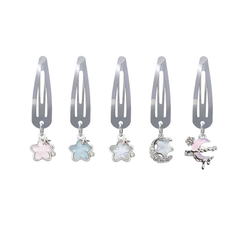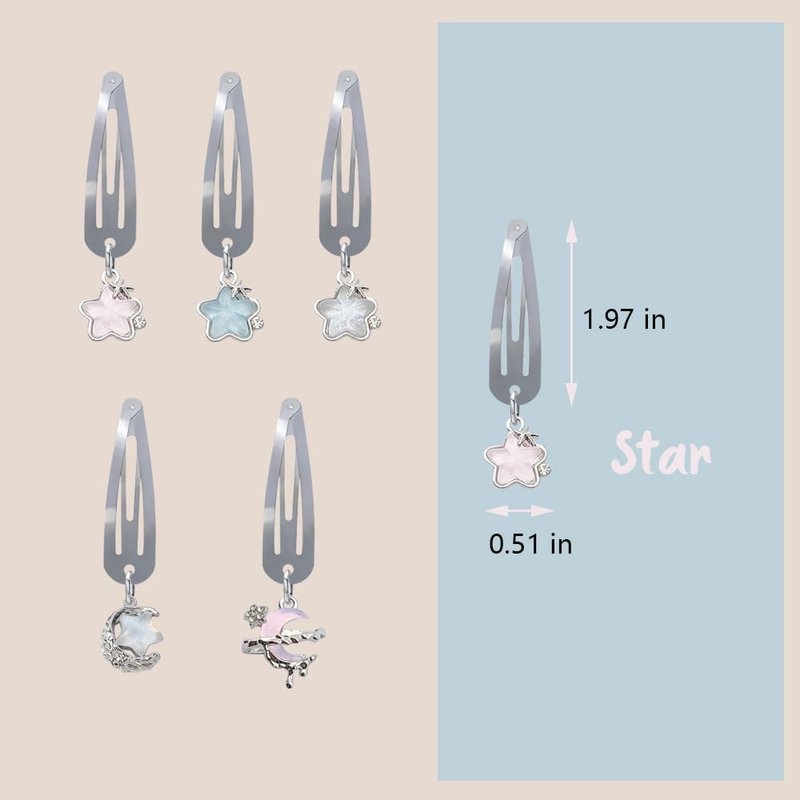 - These hair pins total 5pcs, sweet hair pins of stars and moon pendants.