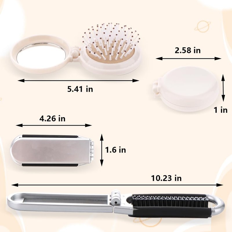 5 Pcs Travel Mirror Hair Brushes