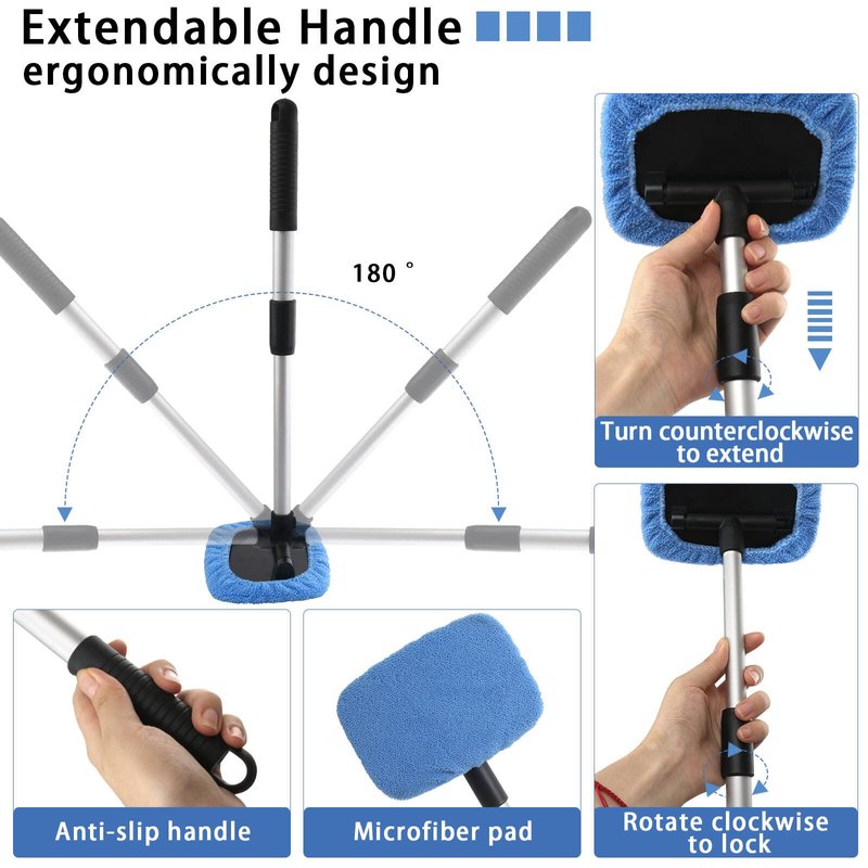 - π FAST AND EASY TO CLEANING AUTO WINDSHIELD: The windshield cleaner tool is designed with extendable handle and pivoting head, makes easily clean car window interiors and exteriors without straining your back. Extendable car washer kit is ideal for most cars, SUV.