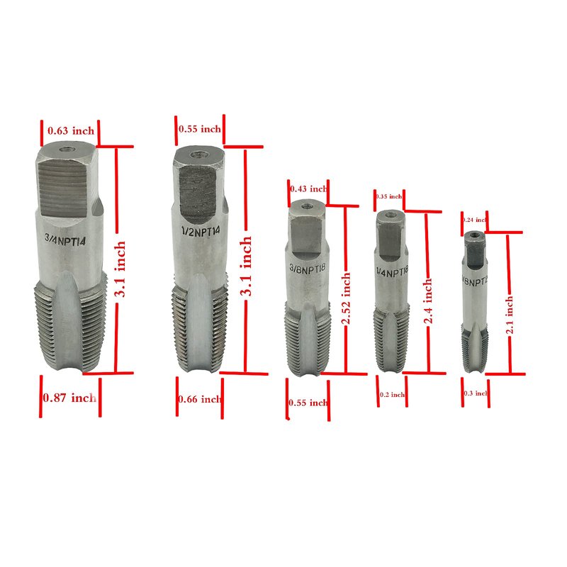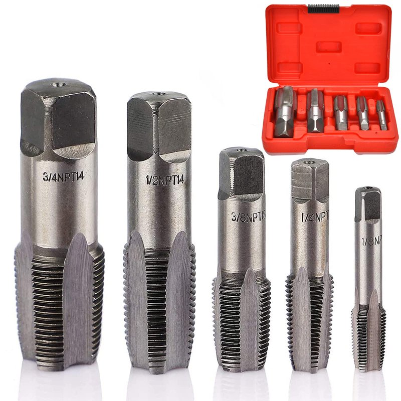 - Versatile set suitable for both personal and professional use. Clean and Re-Thread Damaged or Jam Pipe Threads with Ease - Ideal for Pipe Fittings, DIYers, handymen, and professionals who need to repair damaged pipe threads. Revive Damaged Pipe Threads with Precision Using Our 5-Piece High-Speed Steel NPT Pipe Taps Set.