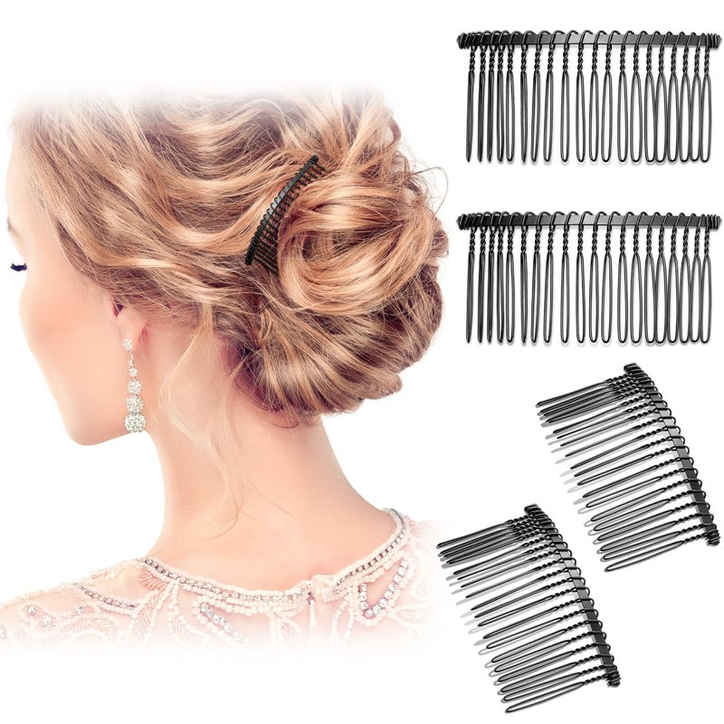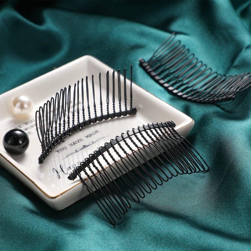 Hair combs are made of metal material, rust rust resistant, quality to use, and with smooth surface, won't hurt your hair and scalp. Proper size for inserting into your hair. These metal hair comb have 20 teeth, and each tooth is looped and twisted, can hold hair securely and comfortably, keep your hair in place.