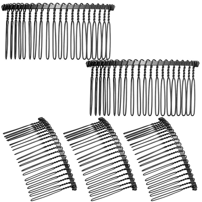 5 Pieces Hair Combs for Women Accessories Metal Bridal Hair Comb 20 Teeth Wedding Veil Comb Decorative for Women Girls Fine Hair(Black)