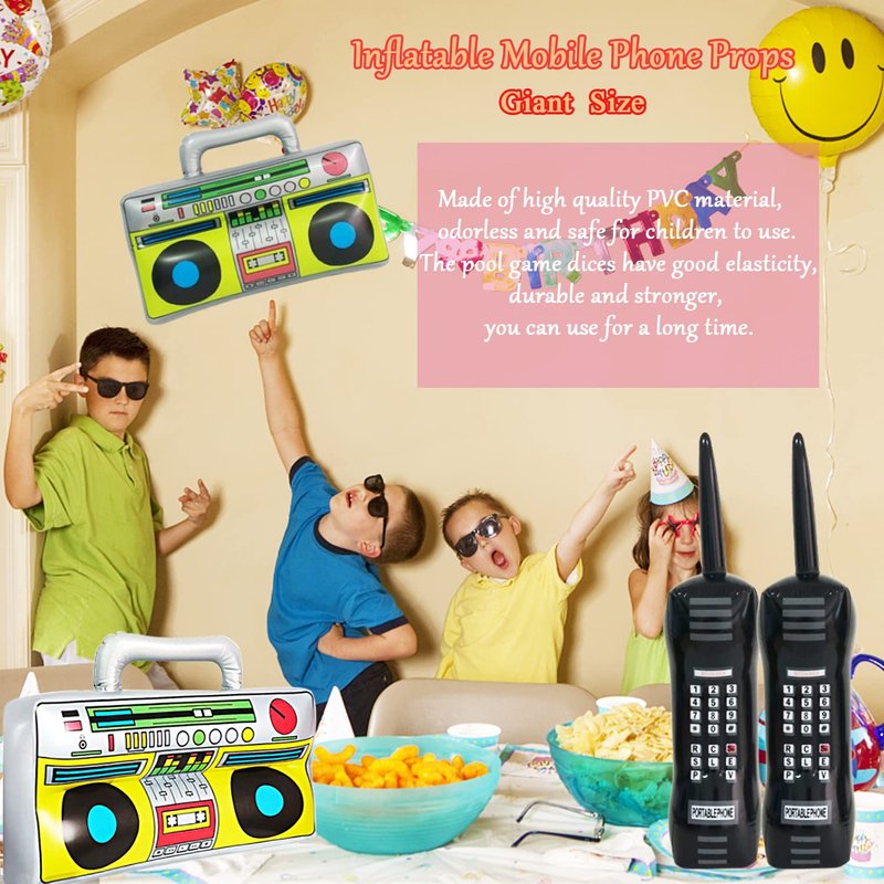 - 💅Package include:3 piece inflatable boom box and 2 piece inflatable mobile phone,a great combination to meet your 80s 90s retro party decoration needs