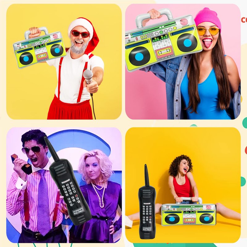 It's very fun to use the inflatable boom box and inflatable mobile phone to decorate your 80s 90s parties,also suitable for adult or child rock star costume rappers,hip hop stars,photo props,party props.make some great memories with these hilarious items, bring a smile to the faces of your friends, family and work colleagues, gain more fun in the party, can be obvious jokes for many situations