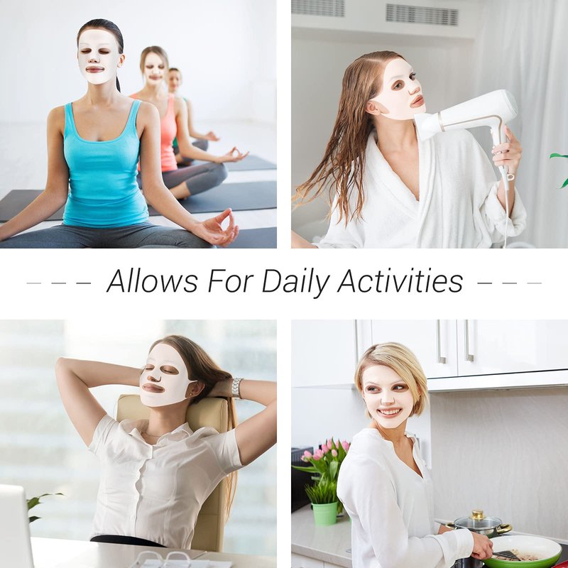 - Thoughtful design: effectively prevent mask from falling off and shift when walking, exercise, play phone, when you apply a mask, you can do what you want to do, even doing exercises, you don't have to lie down, wear over a sheet of mask, it prevents mask essence from evaporating, helps to reserve the maximum amount of essence for skin nourishment
