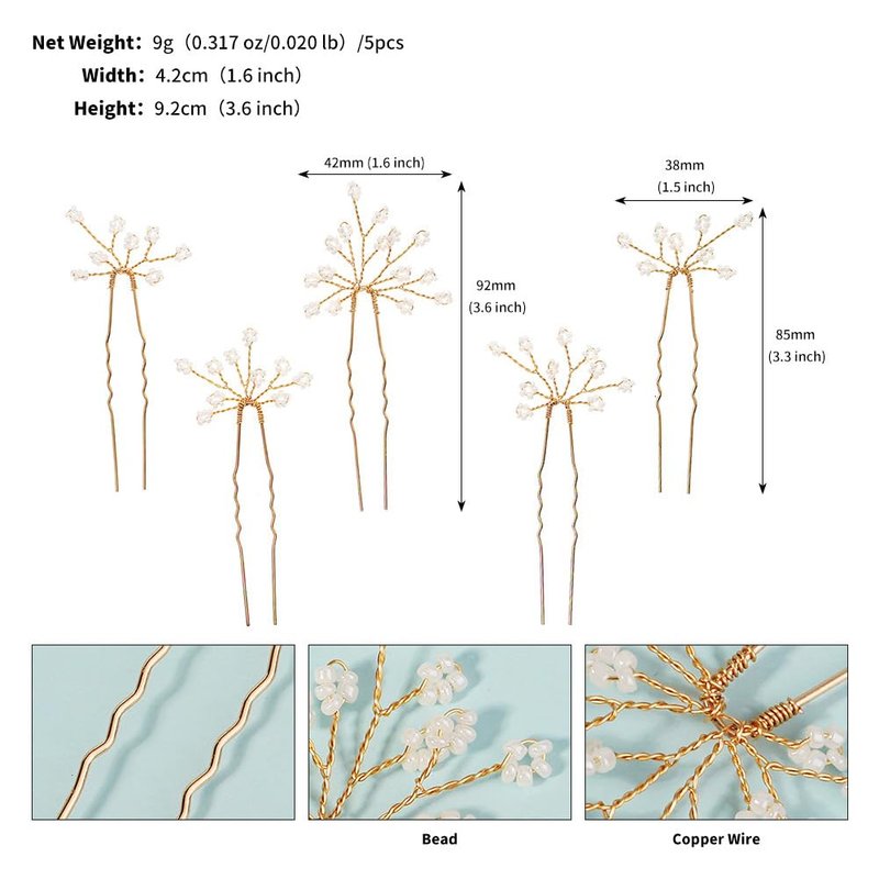 5 Pieces U Shape Wedding Hair Pins for Bridesmaid Beads Wedding Hairpins Bridal Hair Clips for Bride Women and Girls Hair Accessories