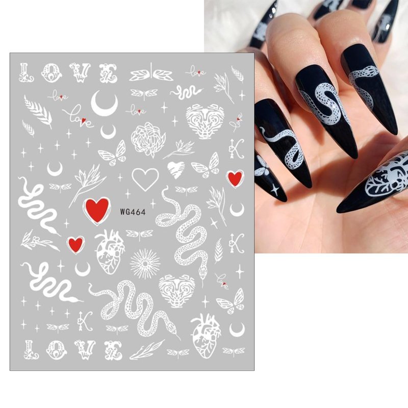 5 Sheets Black Snake Nail Art Stickers White Black Flower Big Snake Nail Decals Red Love Heart Nail Art Supplies Butterfly Star Moon Leaf Nail Art Design Decoration Accessories for Women Manicure DIY