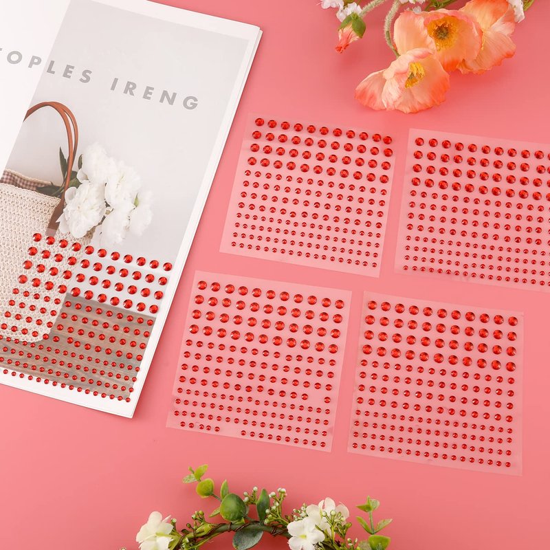 5 Sheets Face Gems Jewels Rhinestone Stickers, 4 Size Self Adhesive Gems Stickers DIY Bling Jewel Crystal Craft Stickers for Nails Hair Face Eyes Body (Red)