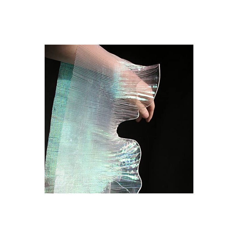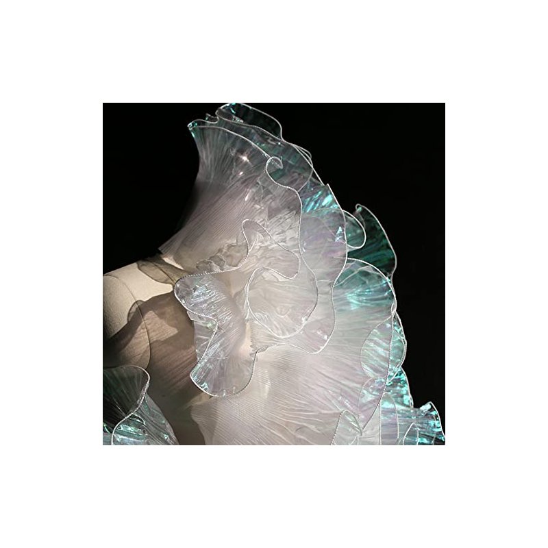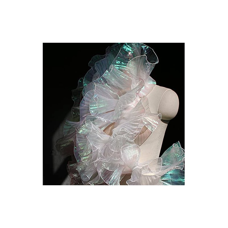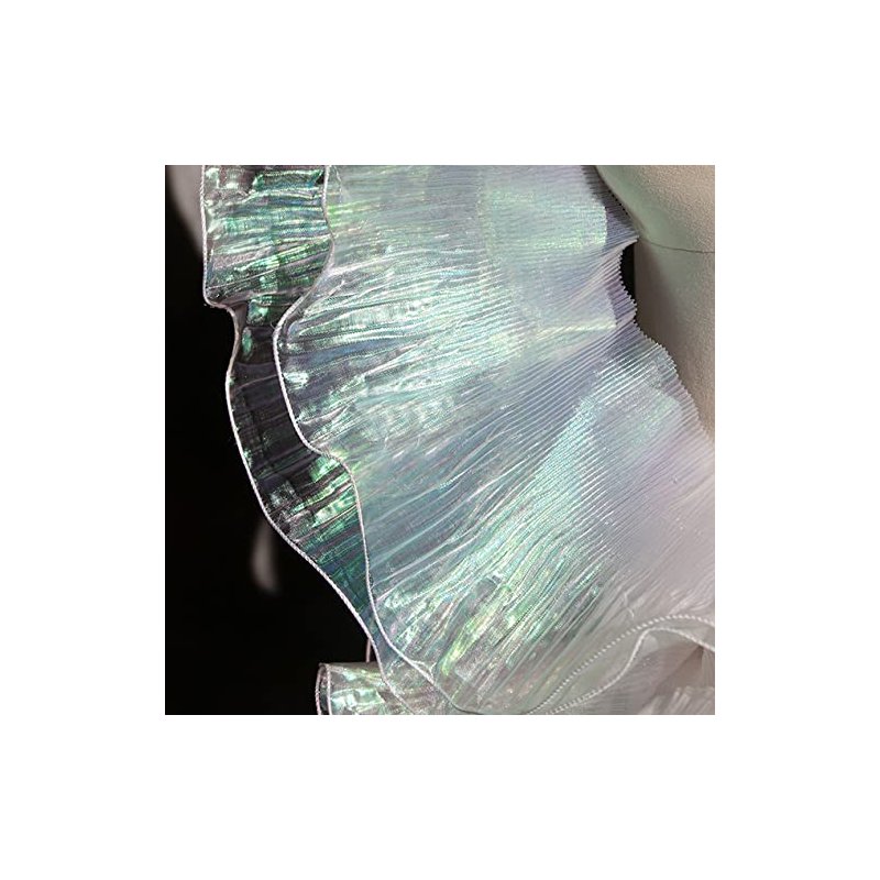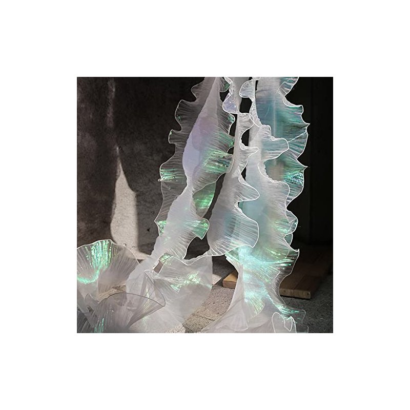 5 Yards Retro Ruffle Pleated Chiffon Trim Dress Bag Decoration Tulle Fabric Applique Trimming Craft Sewing (Iridescent White)