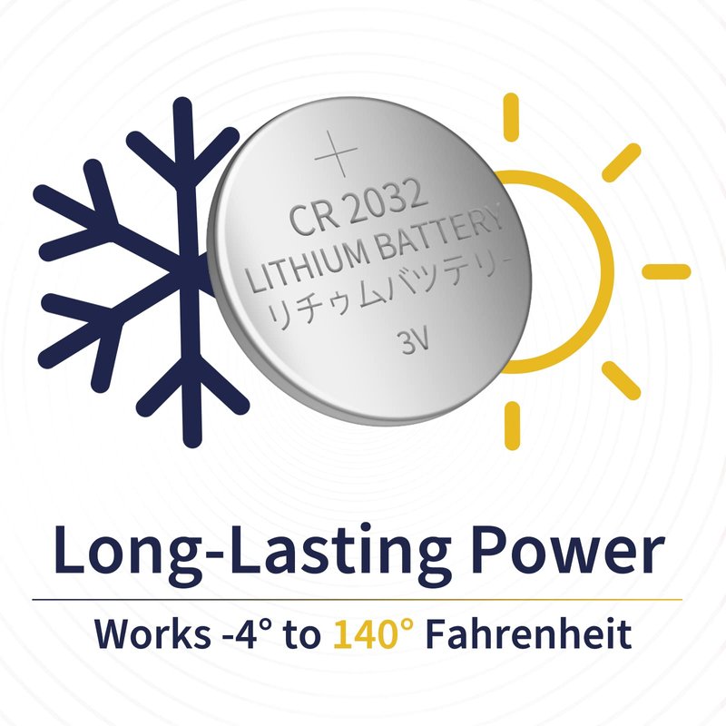 50 Count CR2032 3V Lithium Coin Cell Batteries, Long Lasting Power in Child Resistant Packaging, 8-Year Shelf Life – 50 Pack