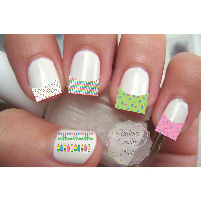 These are water-slide decals, so you just trim them, soak them in water to separate the decal from the backing paper, slide them onto your nail and then position them, then add a clear topcoat. They work best with lighter polish and French manicures. They are not stickers