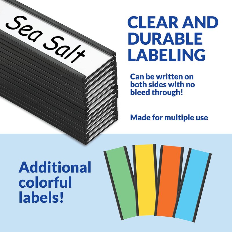 - Everything You Need for 50 Strong Magnet Backed Labels: Designate and organize! Use as drawer and shelf label holders, bookshelf and file cabinet labels and more! The clear label protectors keep your labels crisp and clean.