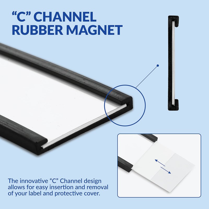 - Heavy Duty Magnet for Superior Hold: Each rubber “C” channel holder is backed with a powerful magnet, so it stays securely in place to maximize your organization efforts. Measures 3” long x 1” high x 0.09” thick.
