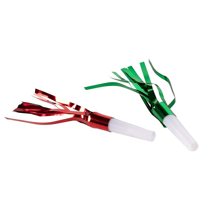 - High Quality: These plastic party horns and blowers are designed with shiny tinsel fringe that bounces light, creating a bright and colorful party ambiance; the foil colors available include gold, fuchsia pink, red, royal blue, and green