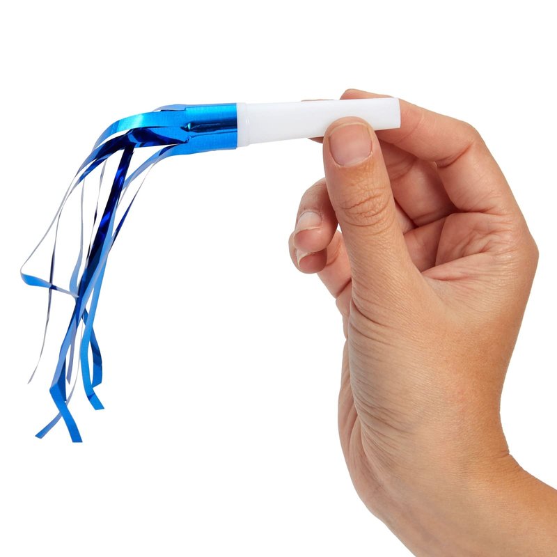 - Dimensions: Our birthday blowers consist of a 2.5 inch plastic part and 3.7-inch tinsel, resulting in a total length of 6.2 inches