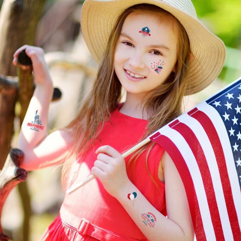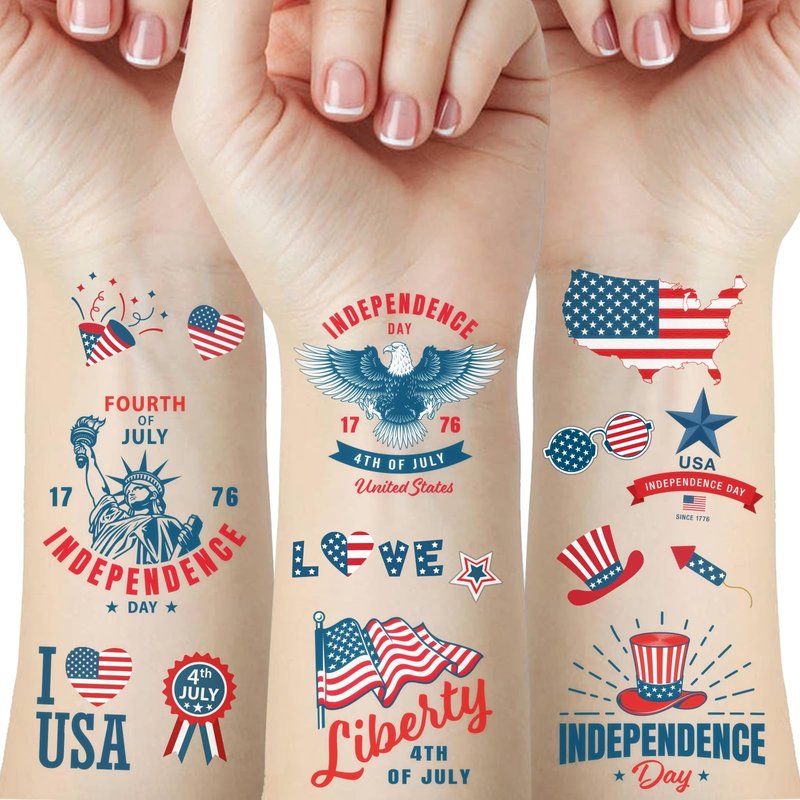 Fourth of July, Independence Day, 4th of July, Patriotic, Memorial Day, Labor Day Temporary Tattoos for USA Decorations Accessories Party Favors