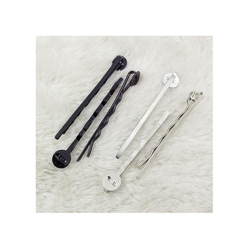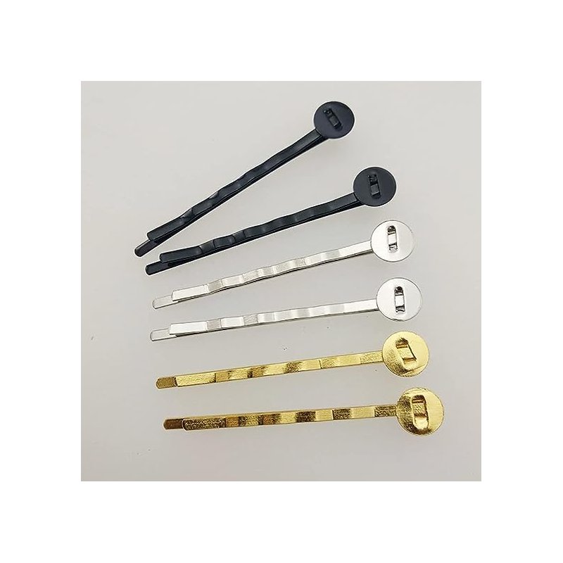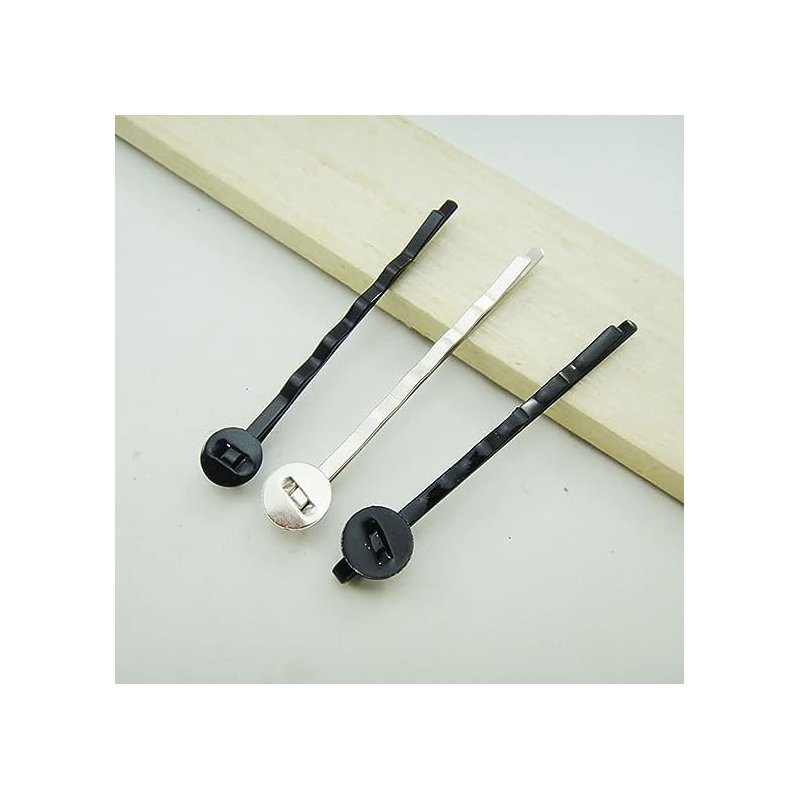 50 Pcs Black Hair Bobby Pins Hair Clips with Blank Round Tray Hair Pins Hairpin Cabochons Bases for DIY Crafts Hair Styling Pins