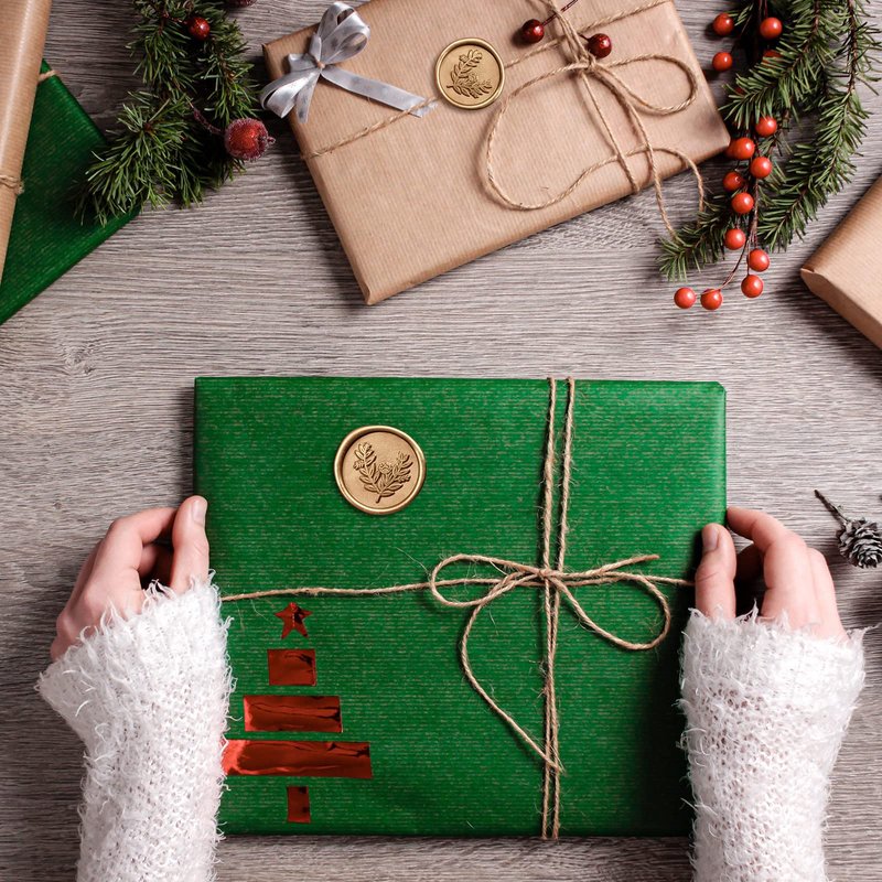 50 Pcs Gold Wax Seal Stickers, Gold Adhesive Envelope Sealing Stickers Decoration for Christmas Gift, Wedding Invitaion, Birthday Party (Eucalyptus Style)