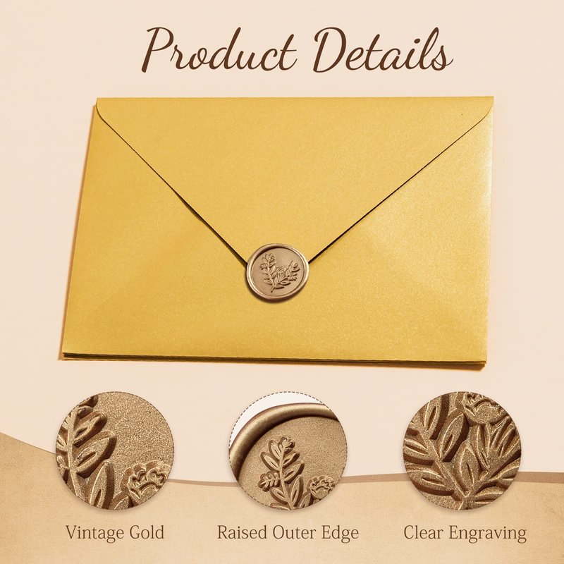 - [Eucalyptus Pattern] The embossed pattern of Eucalyptus branches and leaves and the vintage gold color would achieve a modern classic look. The raised outer edges and precise engraving make them look like authentic wax seals.