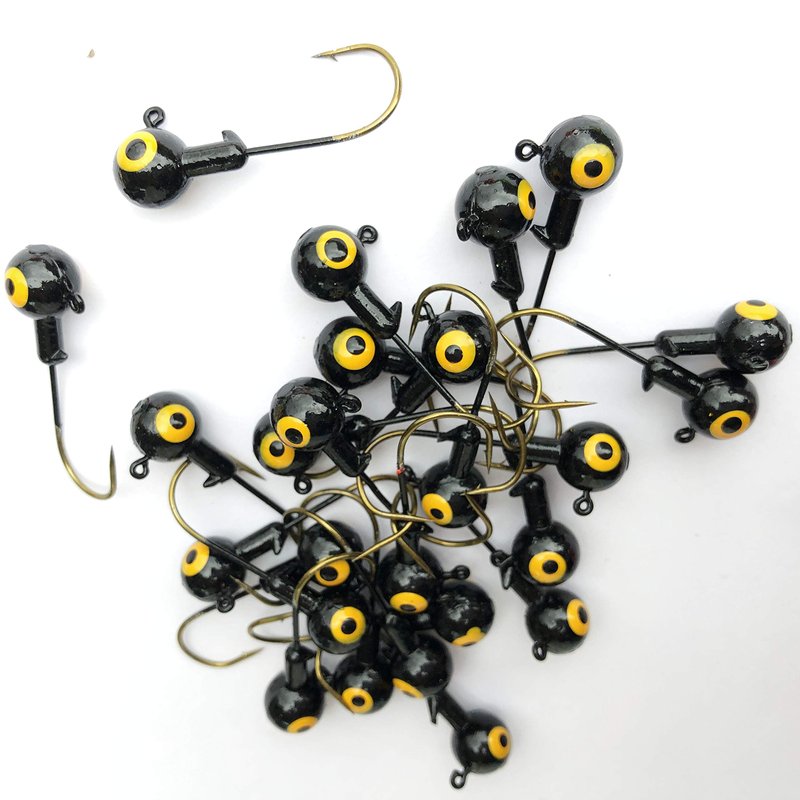 50 PCs Jigheads for Fishing 1/32 1/16 1/8 oz Fishing Hooks Crappie Bass Double Eyes (Black, 1/16 oz)