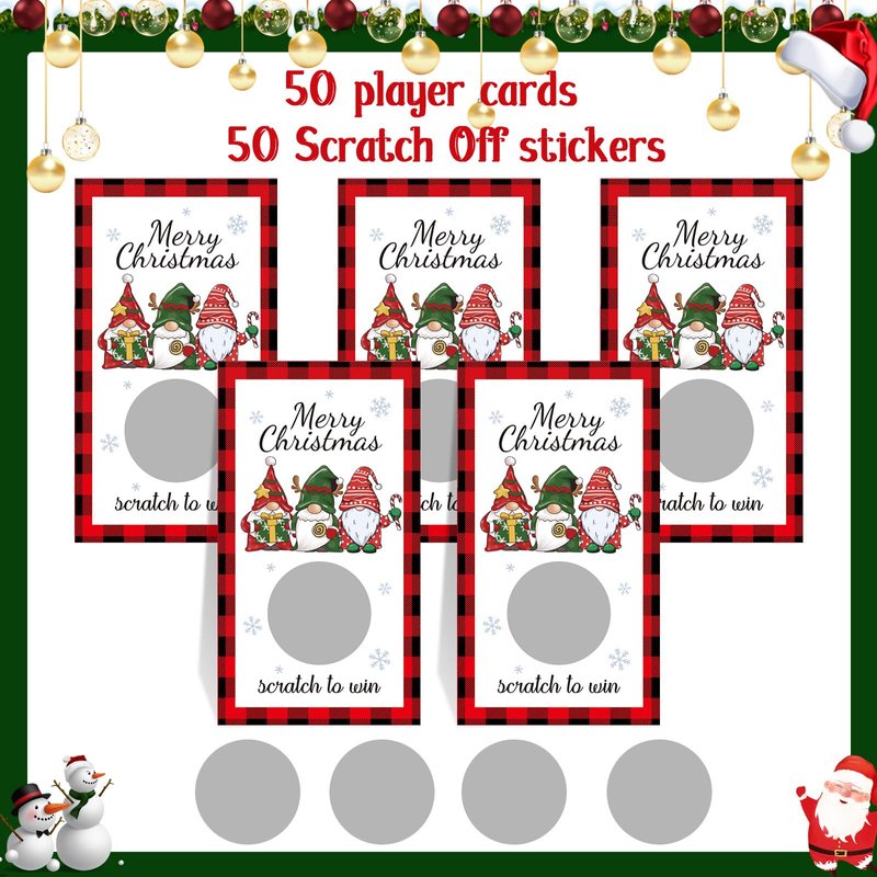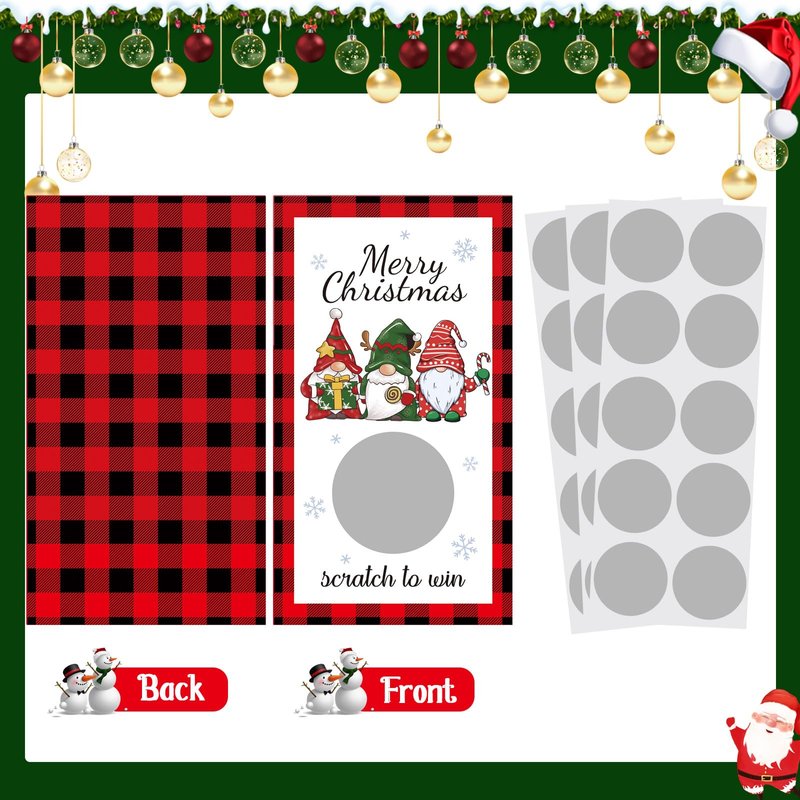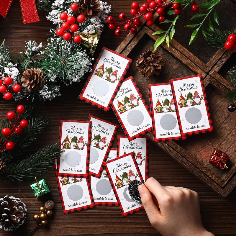 - How to use: these scratch off game cards are printed with 2 results, you can set how many winners and losers, and then paste the scratch off stickers; Just scrape off the layer with your finger, and you will know the result; You can write a personal note or Christmas wishes in the back of this card