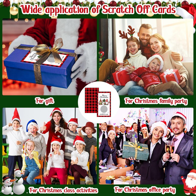 - Wide application: use this set of Christmas scratch off cards for groups, adults, kids and elves, nice for Christmas party games, wedding games, graduation parties, birthday parties, festive holiday parties, business giveaways and in place of raffle tickets, options are endless and most people may adore these interesting scratch off cards
