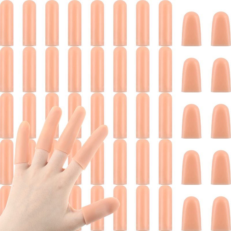 50 Pieces Gel Finger Cots Gel Finger Support Protector Gloves Gel Finger Cover Caps Silicone Finger Sleeves, 40 Pieces Long, 10 Pieces Short (Beige)
