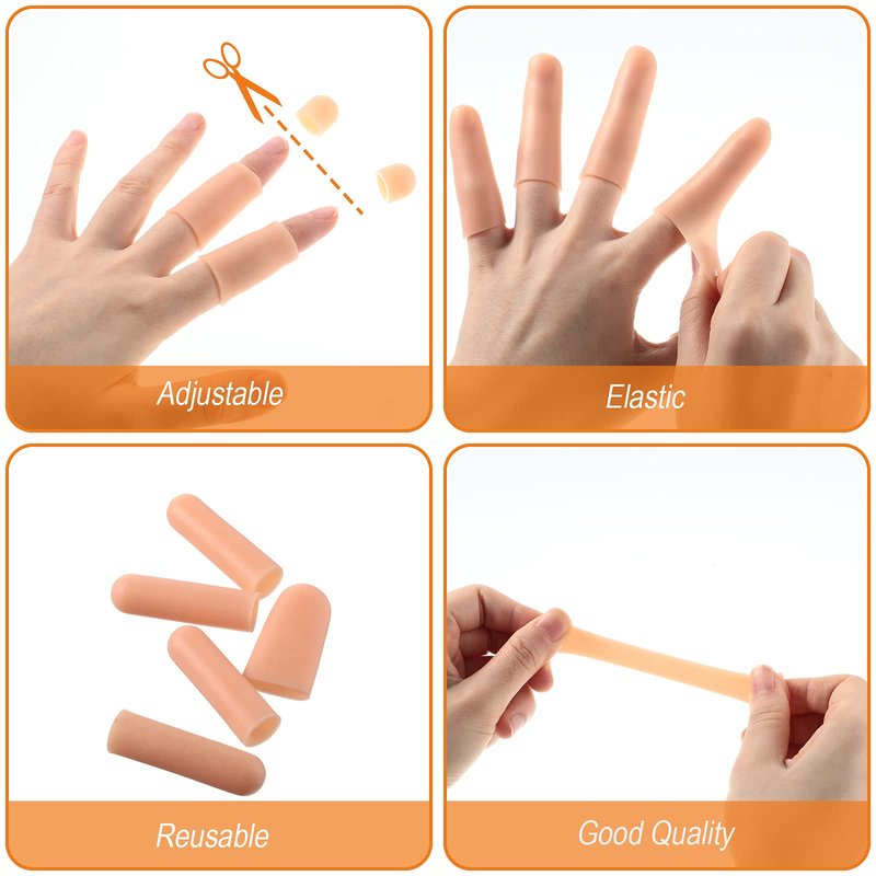 The silicone gel finger sleeves are safe, reusable and reliable. They can be adjusted to different lengths to meet your requirements.