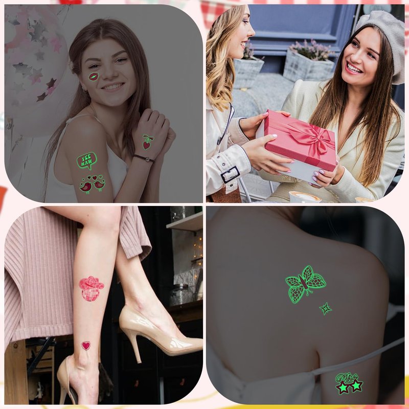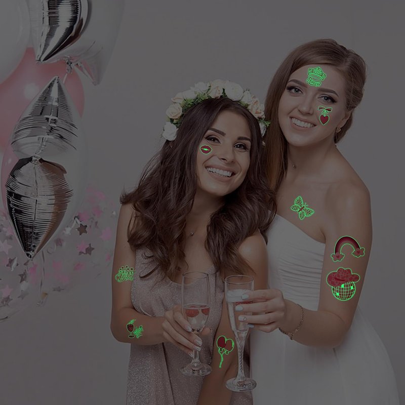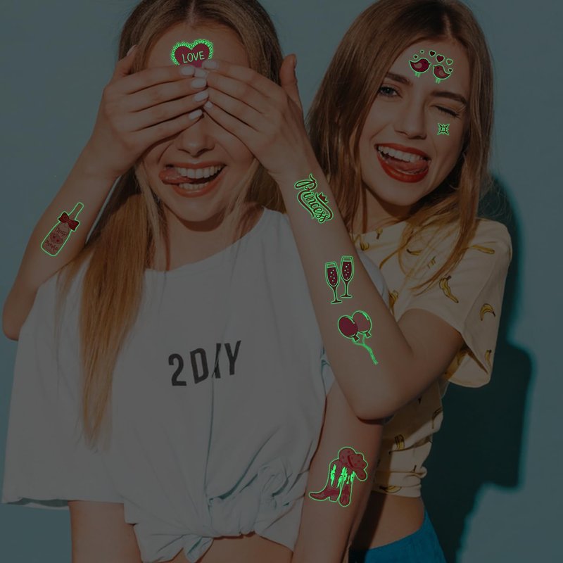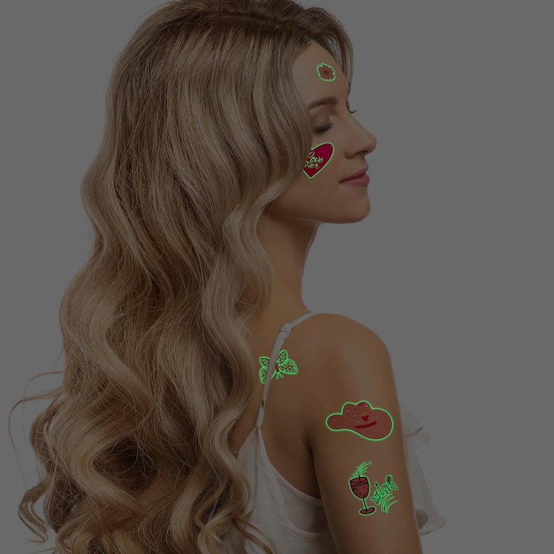 - Glow In The Dark Temporary Tattoos: After absorbing sunlight during the day, this tattoo will glow in the dark. The luminous time will be affected by light and temperature. If the luminous effect becomes weak or even no luminescence, just absorb the light again and it will shine again.