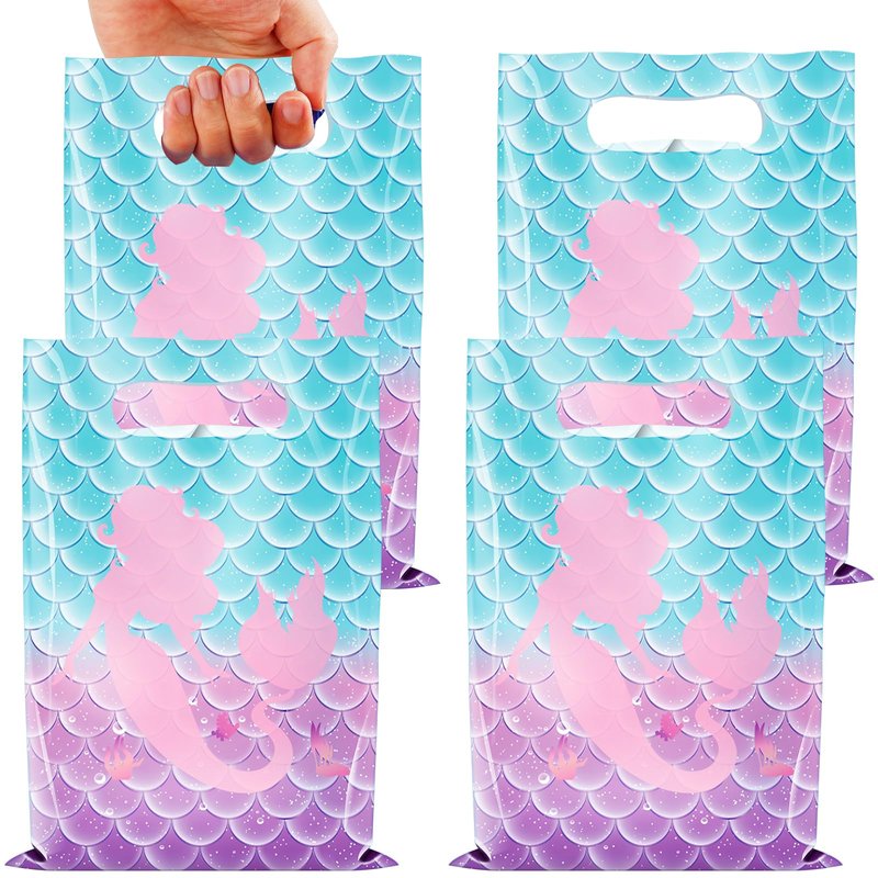 - Wide application: these durable plastic mermaid bags are great for gift bags,plastic goodie bags, party favors bags, treat bags,ideal for mermaid theme birthday party or baby shower party favors decorations and supplies, can be use for containing small gifts like treats, cookies,biscuits,candy, snacks, prizes, chocolates and more.