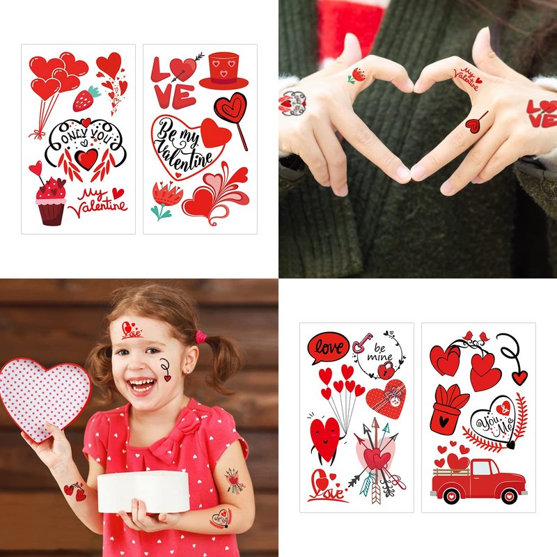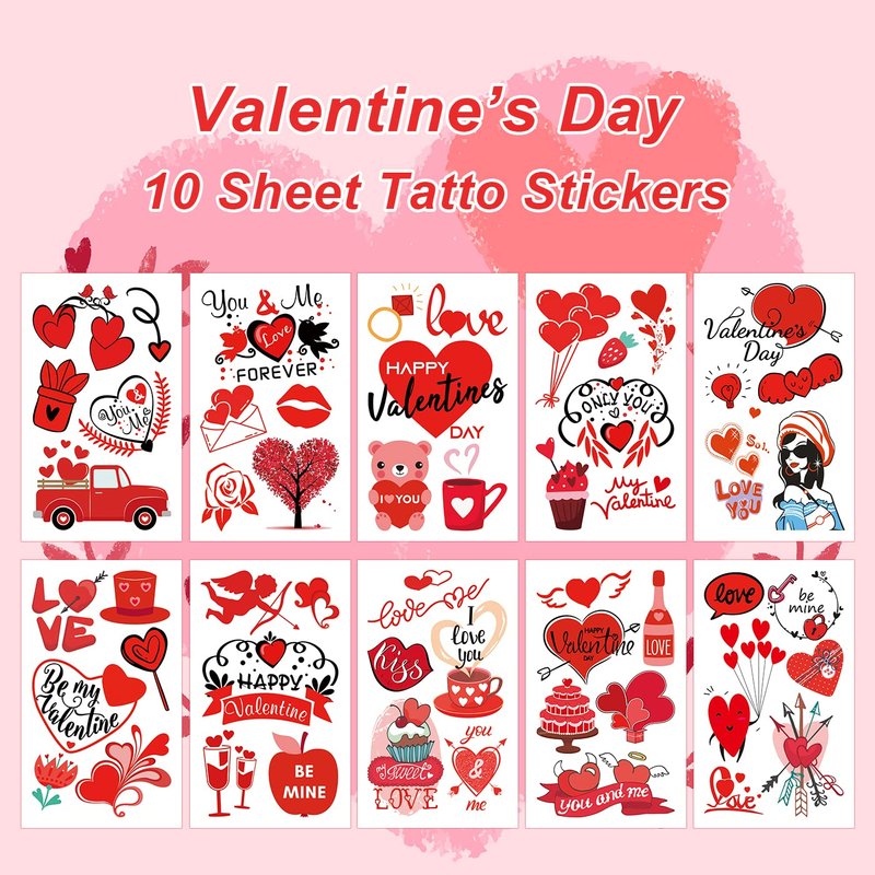 - Valentines Tattoo: You will receive 10 sheets Valentine's Day temporary tattoo stickers. Each sticker contains many patterns, and the sticker size is 10.5*6cm/4.13*2.36 inches.