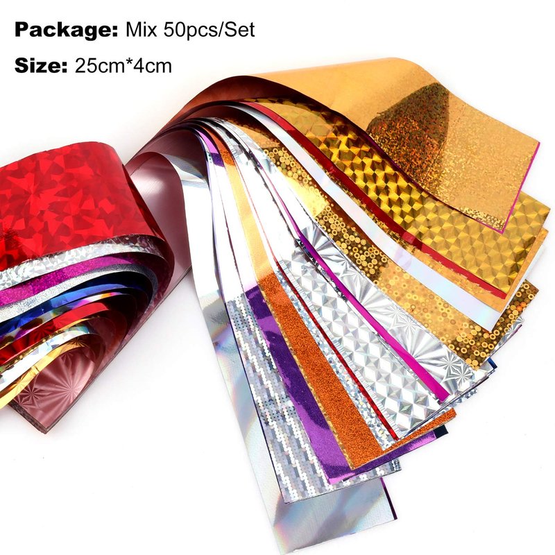 - Package Includes: 50 sheets different colors nail foil sticker,about 1.57inchs*9.84inchs per piece.