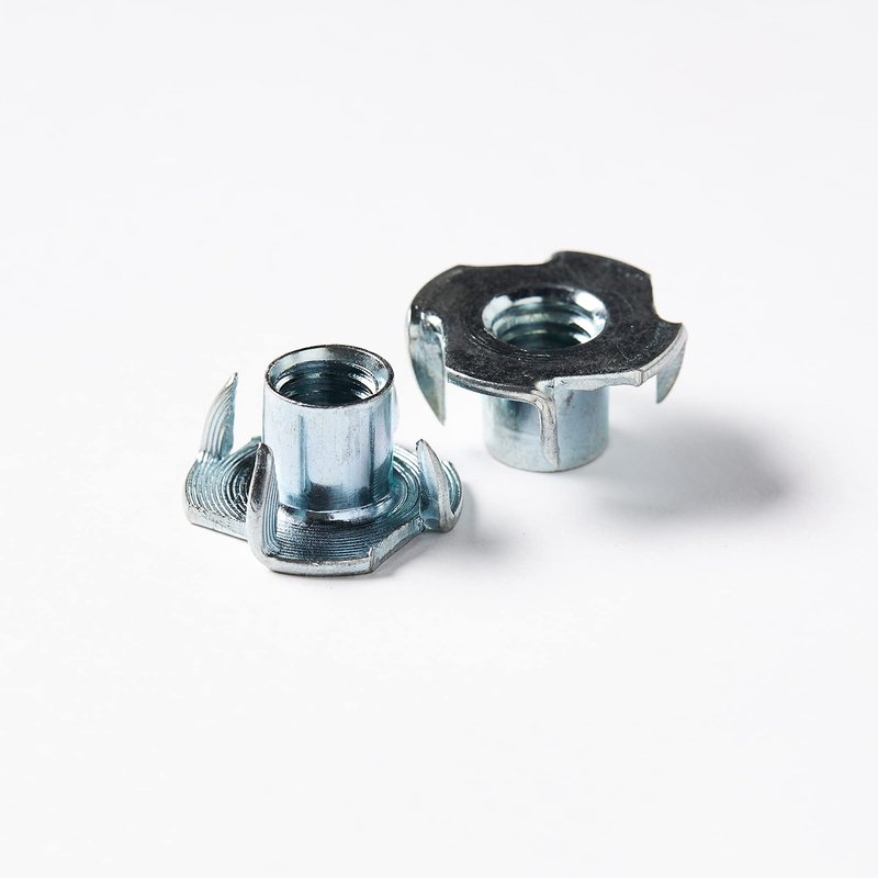 A 50 pack of our premium climbing wall t-nuts suitable for indoor and outdoor use. 3/8 inch diameter, 4 prong, zinc plated. We recommend 2.25 t-nuts per square foot of climbing surface.