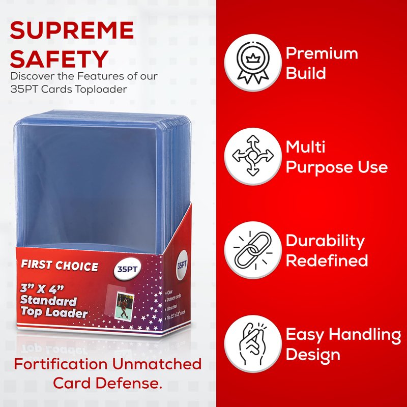 Protect your valuable trading cards with our count case of top loaders for cards! Our premium standard size protector sleeves are designed to fit 3xinch, 35PT cards, making them perfect for all of your sports card collecting needs. Whether youre a fan of baseball cards, football cards, basketball cards, or hockey cards, these clear card holders provide the ultimate protection for your prized possessions. Our card sleeves are also perfect for Pokemon card collectors, with a snug fit that keeps your cards safe and secure. No more worrying about bent corners or damage from handling - our top loaders ensure that your collection stays in pristine condition. These penny sleeves for trading cards are a must-have for any serious collector looking to preserve their investment. Not only are our card protectors functional and durable, but they also offer easy organization and storage. Use them in conjunction with a baseball card binder or baseball card storage box to keep your collection neatly organized and easily accessible. With strong SEO based on popular keywords like ultra pro card sleeves and trading card sleeve, our product is sure to meet all of your collecting needs. Dont let your valuable sports cards go unprotected - invest in our high-quality top loaders today!