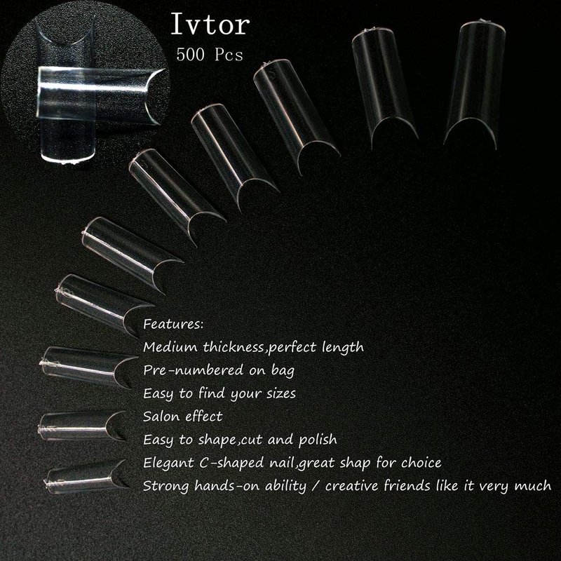 500 Pcs Clear False Nails Half Nail Tips Acrylic Traceless Fake Nail Home DIY Nail Art 10 Sizes
