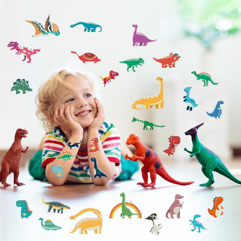 - 【Wide range of uses】Tattoos for kids can not only be attached to the face, legs, hands, arms, shoulders and other parts of the body, but also can be attached to some smooth objects, such as children's toys, stationery, cups, gift boxes, and so on. Kids will be very happy and excited when they receive this dinosaur tattoo sticker.