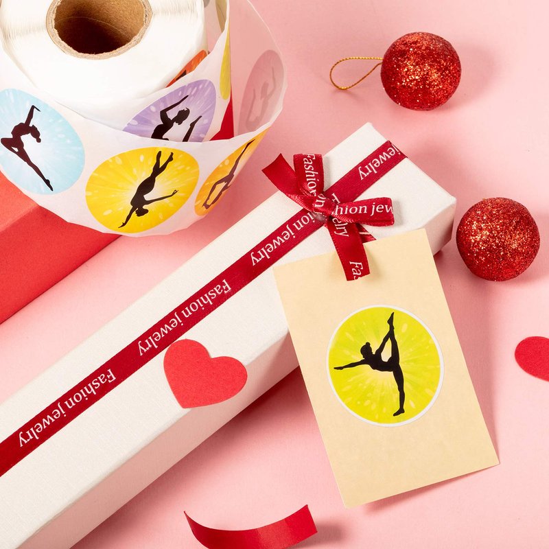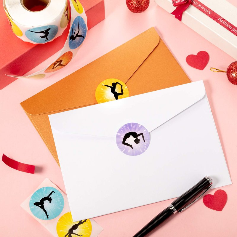 500 Pieces Gymnastics Stickers Gymnastics Art Girl Stickers Roll Round Decorative Seal Stickers Gymnast Party Favors for Birthday Gymnastics Party Classroom Reward