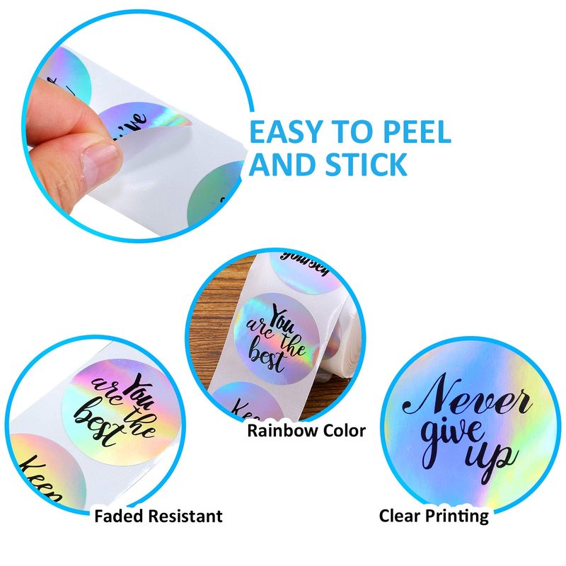 - Conspicuous design: the bright holographic rainbow stickers make you feel like bathing in the sun after the rain; They are easy to attract people's attentions, bring up your motivations and help you get rid of your worries; The circular label design allows each label sticker to be removed easily