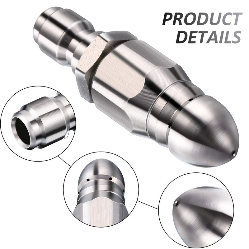 - Sturdy material: the pressure drain jetter hose nozzle is made of stainless steel, which is durable and resistant to corrosion, all-stainless steel structure makes it difficult to break, providing long-term service for you