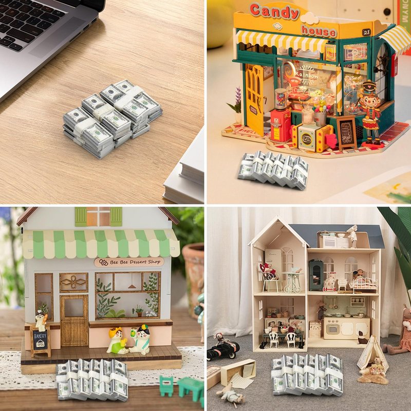 500PCS Miniature Scene Model 100 Dollar Bills for Dollhouse 1:12 Dollar Bills for Dollhouse Accessories