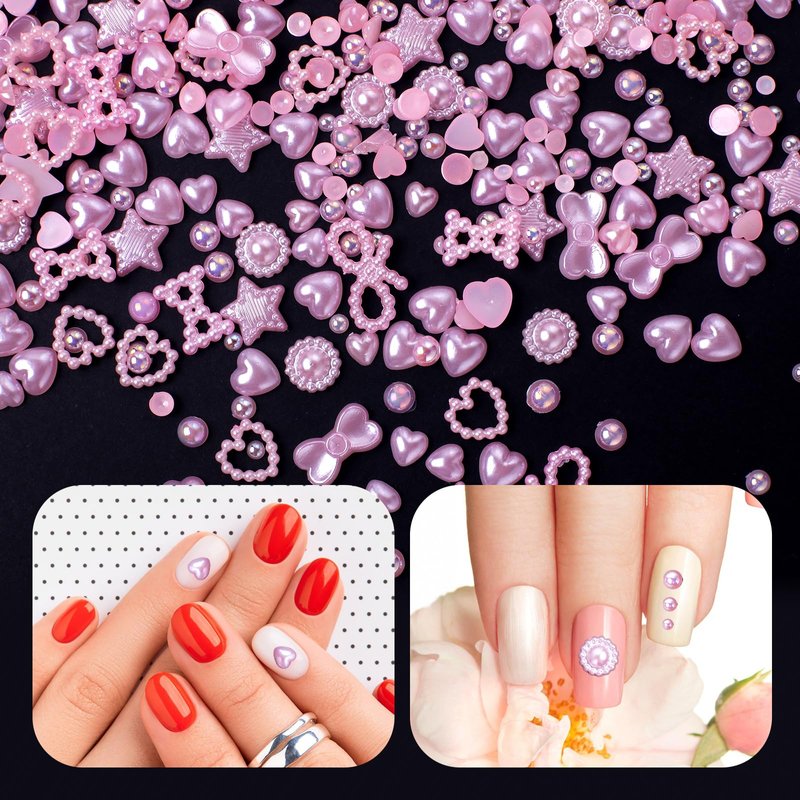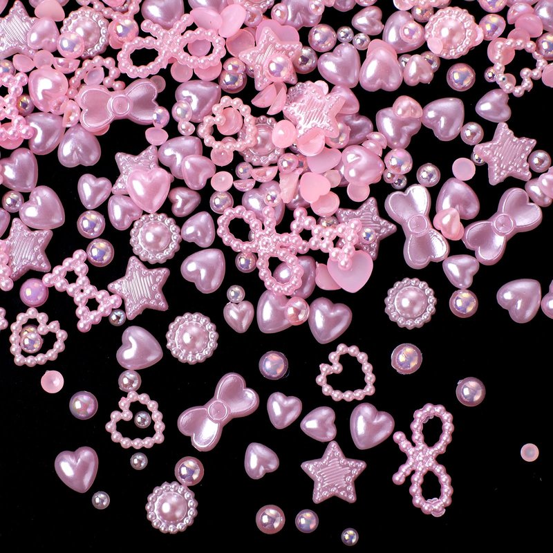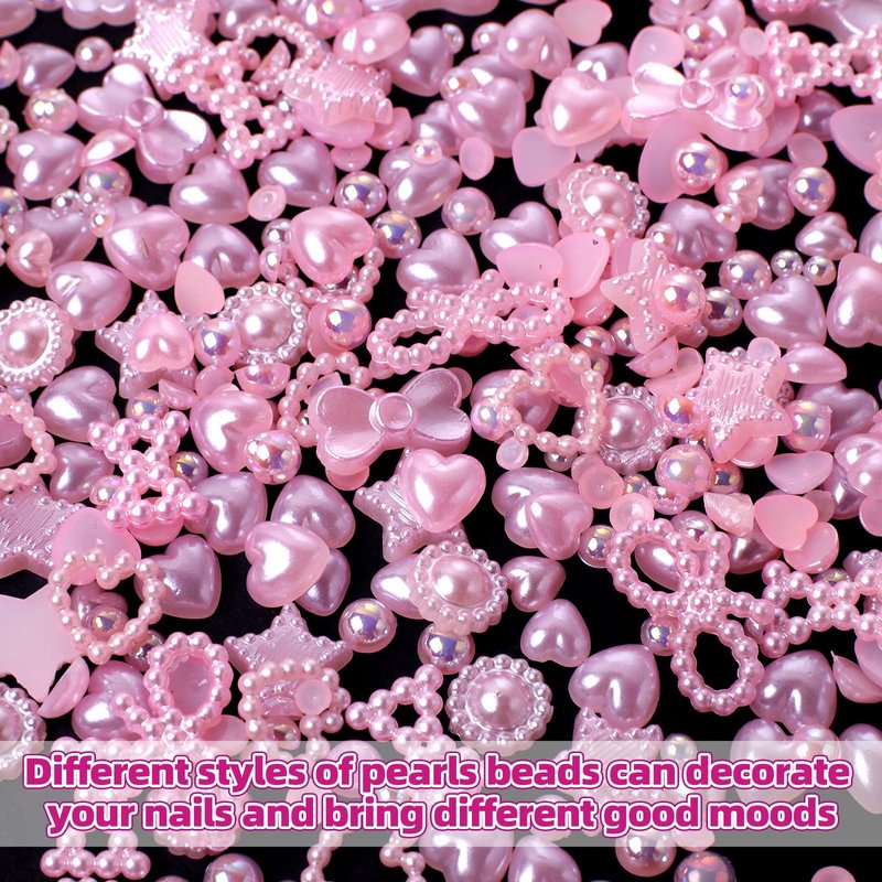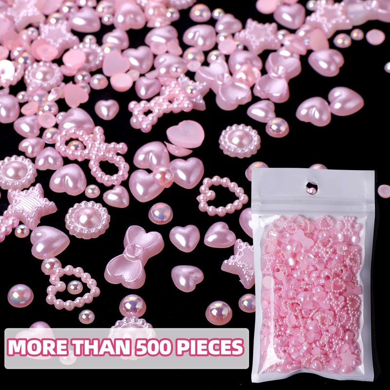 - ★Pink Heart Pearls Nail Charms: Total in 500pcs pink pearls assorted nail charms include hollow heart, hollow bowknots, sunflowers, butterfly bowknots, star and round beads.