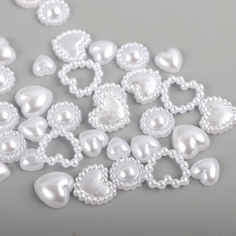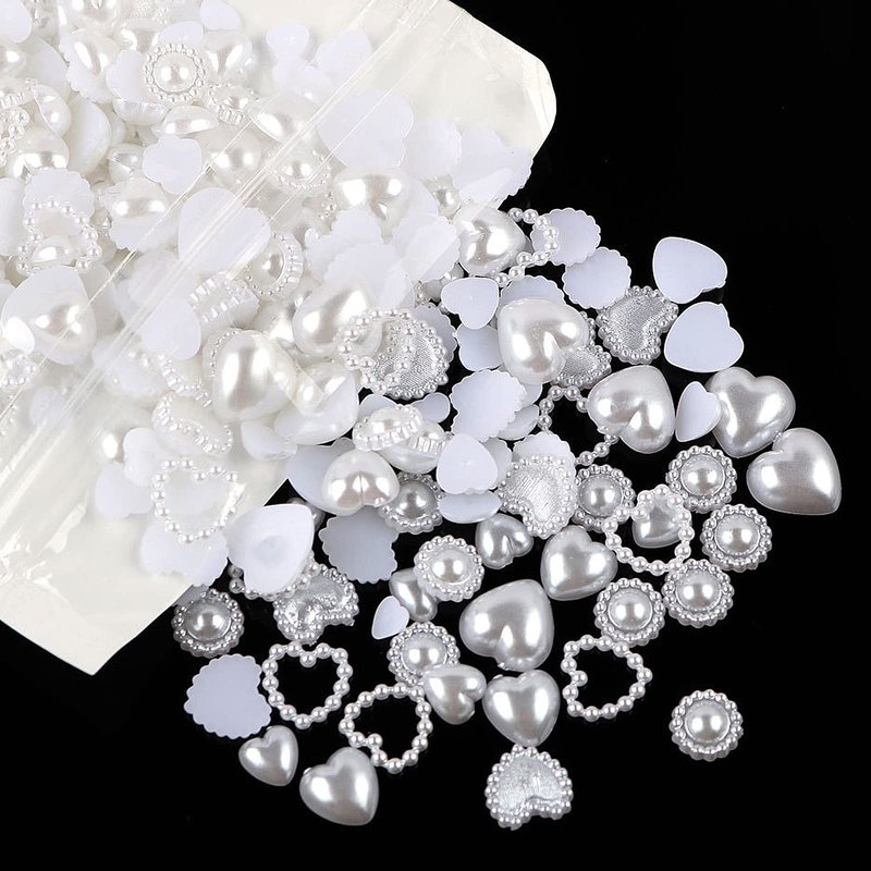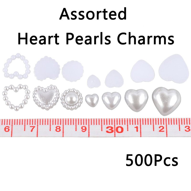 - ★Heart Pearls Nail Charms: Total in 500pcs white heart shaped pearls assorted nail charms.