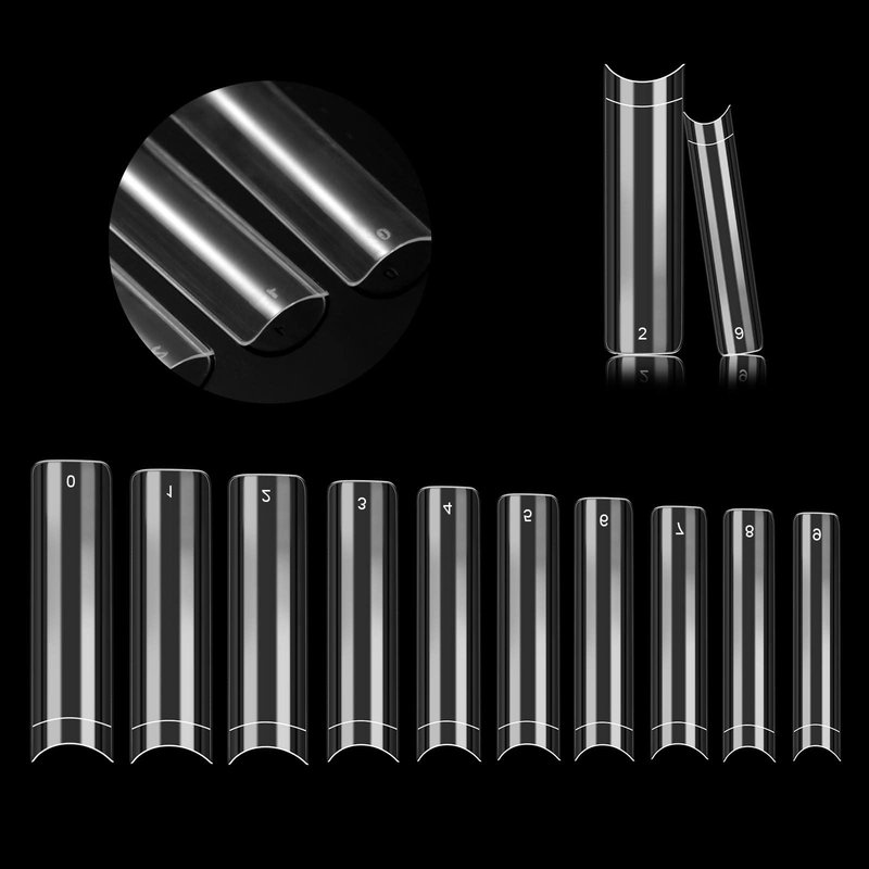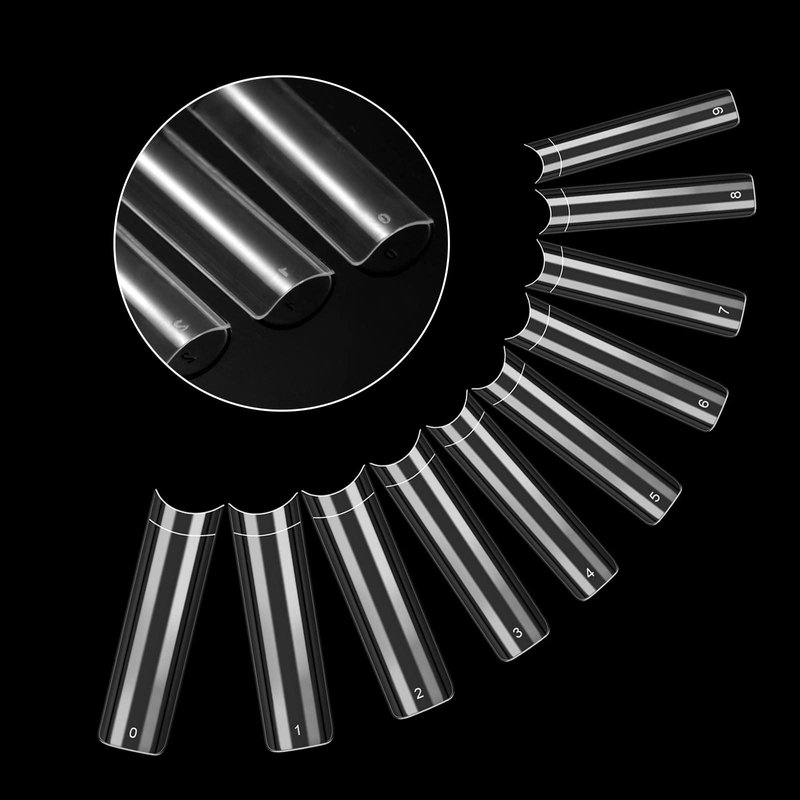 - 500PCS STRAIGHT CLEAR NAIL TIPS YOU WILL GET:You will get 500pcs half cover long fake nails tips in total,they come with 10 different size, each size has 100pieces, you can choose right size for nail salons home DIY nail art.