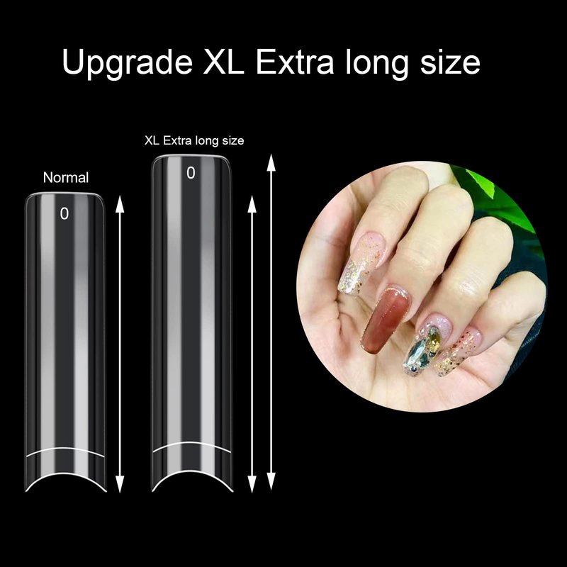 - QUANLITY XL NO C CURVE NAIL TIPS:Clear half cover square nail tips are made of high-quality ABS material which is durable in use and has no smell. They are easy to cut, paint and apply. Xl clear nail tips no c curve has suitable thickness and firmness that can last 2-3 weeks.
