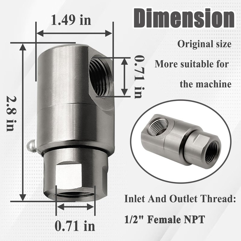 Hose Reel Swivel Fitting Replacement for Hose Reel of Multi-Use Scenarios. Made of high quality material, hard and durable metal, corrosion and rust resistant, longer service time. Note: Maximum pressure of 5000 PSI Contact us if you still have any other quesions. We're willing to give help.