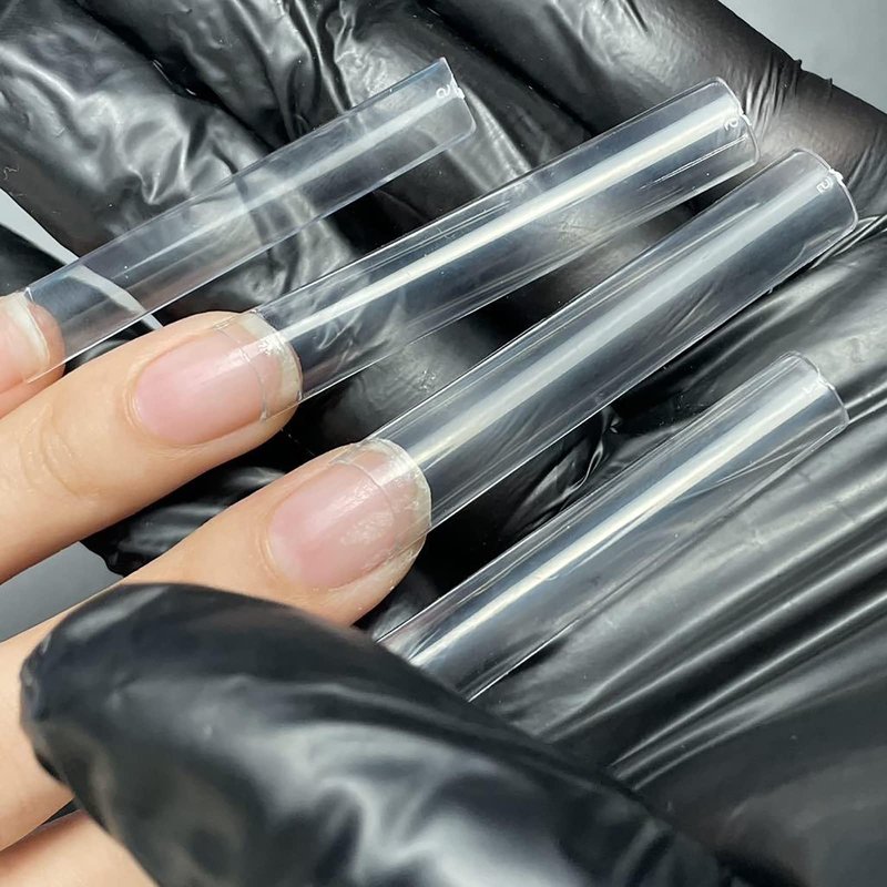 504Pcs Extra Long C Curve Nail Tips XXXL Clear Square Half Cover Nails for Acrylic Nails