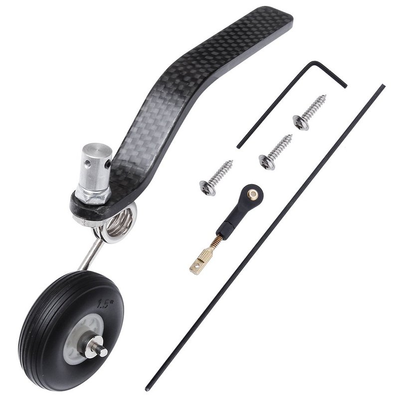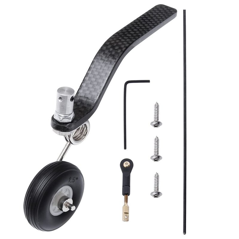 50cc Nitro Great Plane Landing Gear Carbon Tail Wheel Assembly 1.5 inches Rubber Tire Kit RC Airplane Replacement Parts