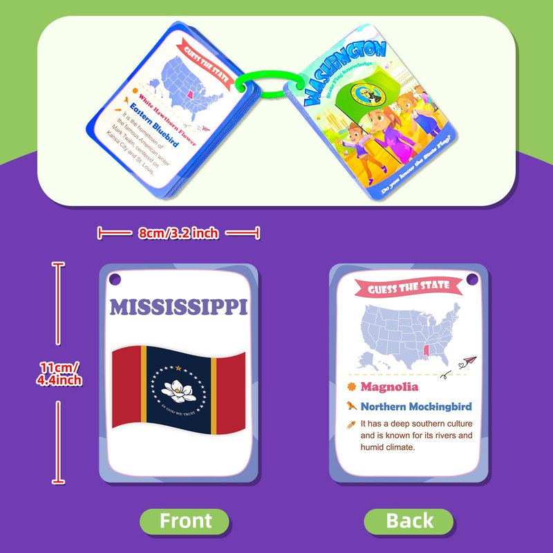 - SUITABLE FOR AGES 3+: The America state flag flash cards are designed for preschoolers and up during homeschooling, preschool, or kindergarten to spark their interest in the world.