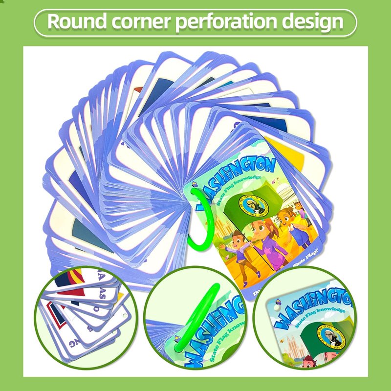- PORTABLE AND CONVENIENT: Lightweight and compact, the U.S. state flag flash cards come with a ring that's easy to toss in bags for on-the-go learning anywhere, anytime.